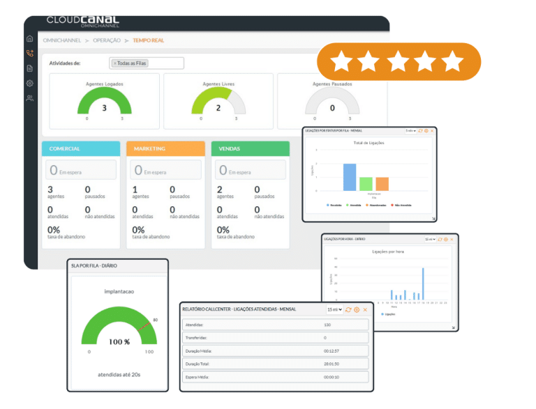 Monitoramento em tempo real: Acompanhe as interações em tempo real, permitindo que os gestores identifiquem tendências, avaliem o desempenho dos agentes e intervenham imediatamente em situações críticas
